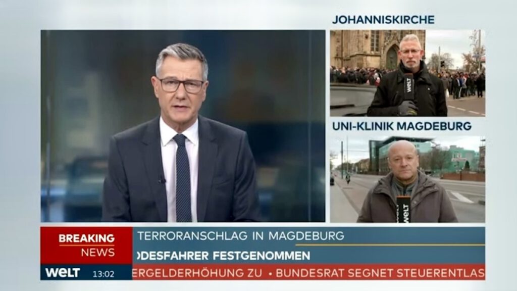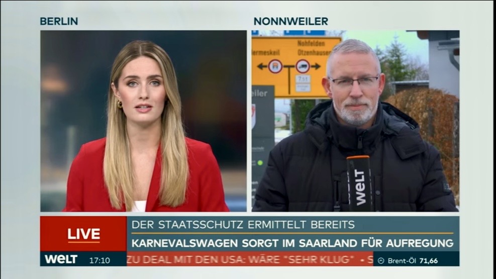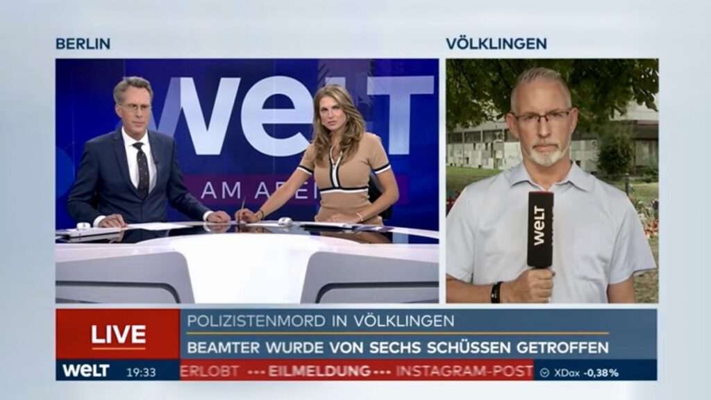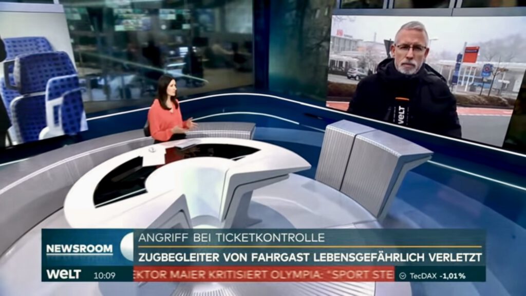 - im Fernsehen tätig als Reporter / VideoJournalist: NonstopNews | WELT | RTL – n-tv | Pro 7 – Sat 1 – Kabel 1 newstime | Servus TV | RTL Hessen | BILD TV
